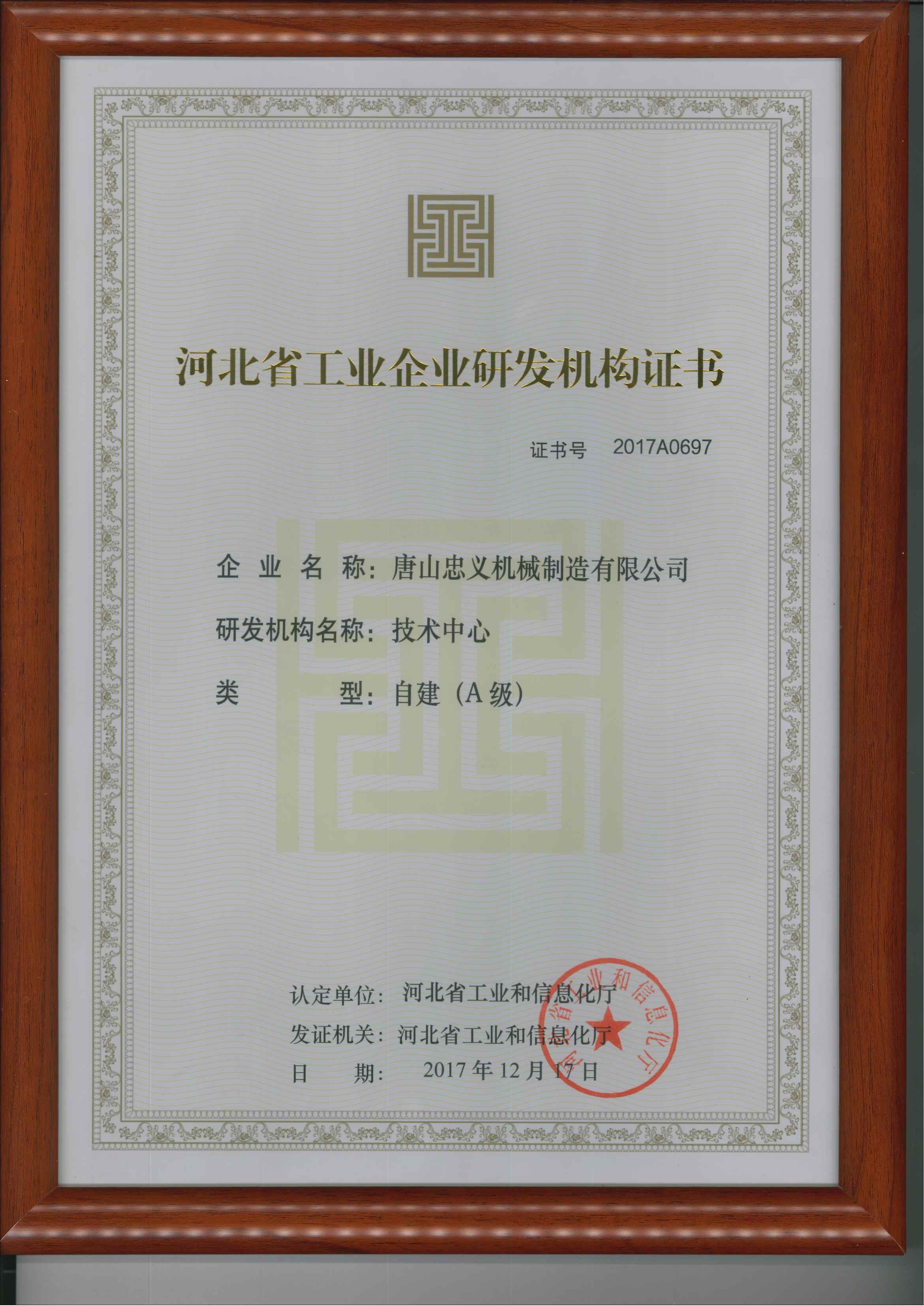 河北省工業(yè)企業(yè)研發(fā)機構(gòu)證書彩色原版 發(fā)布時間:2025-08-18 點擊: 421 上一條: 河北省專精特新中小企業(yè) 下一條: 河北省科技型中小企業(yè)證書(新)